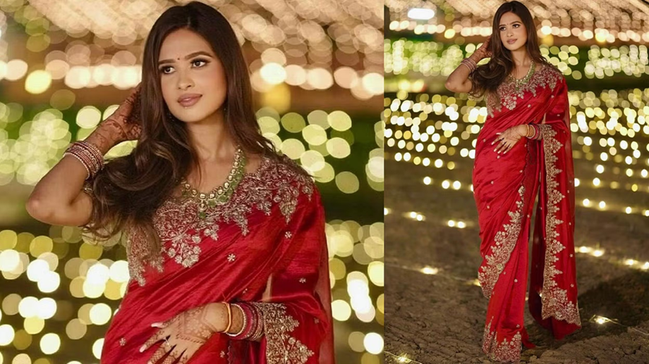 First of all, let's take a look at Agrata's engagement look, so on 20 April 2024, Kumar Vishwas shared pictures from his elder daughter Agrata's roka ceremony from his Insta handle. Agrata looked very beautiful in these pictures. She wore a beautiful red colored saree in these pictures, which added to her beauty.