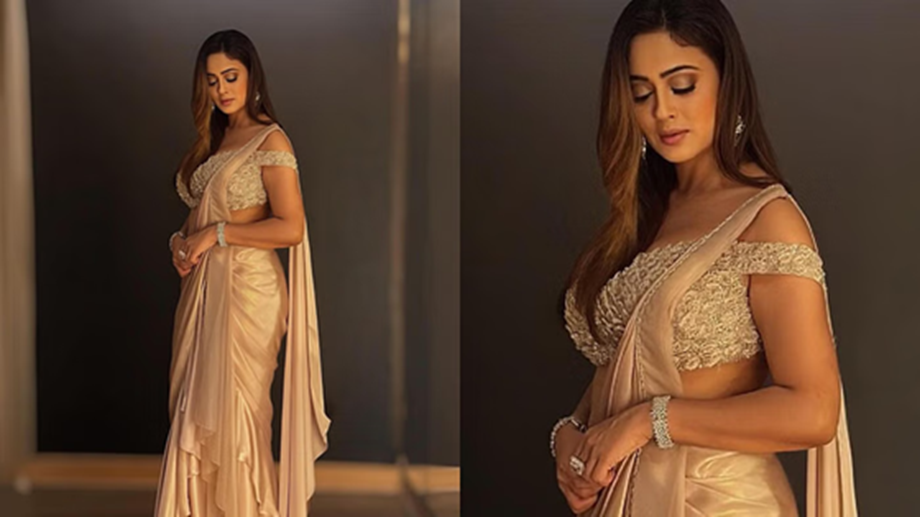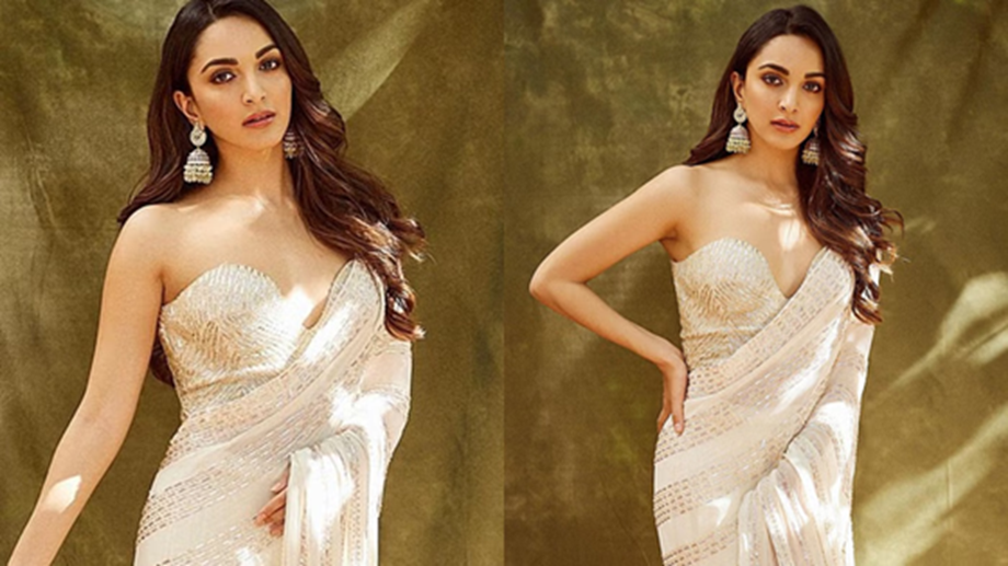 If you are carrying a sequin work saree, then this kind of tube blouse will look amazing with it. If you are wearing a tube blouse, then definitely use a highlighter on your neck bone, so that your throat and neck are highlighted. Keep your hair open if you want.