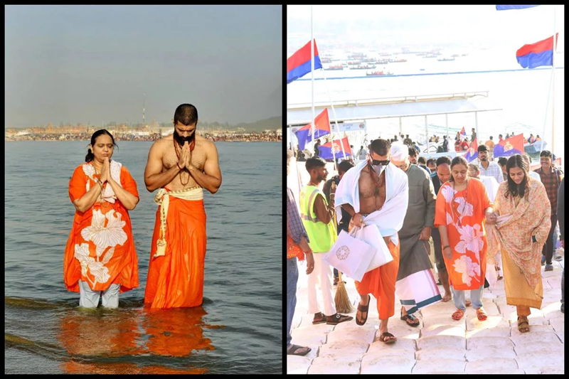 Vijay Deverakonda visited Maha Kumbh with his head bowed.