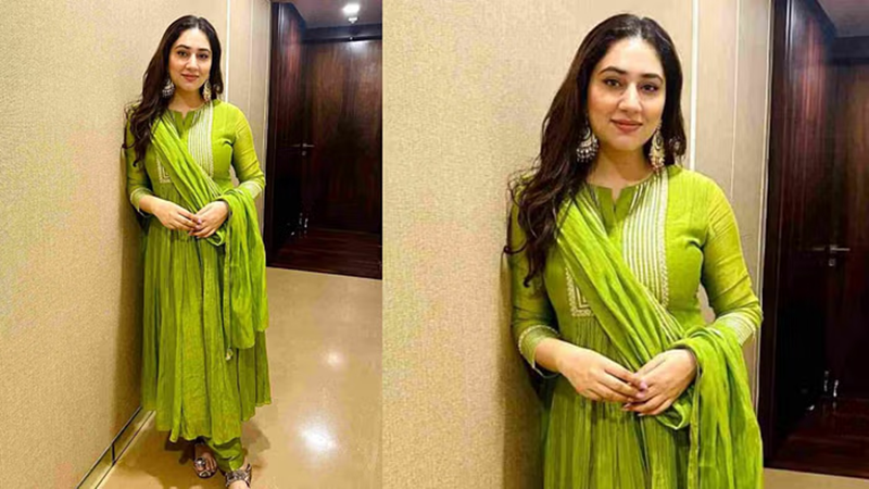 If you want to wear something different, then wear this kind of green Angrakha suit. Angrakha's suit looks very beautiful. Do carry a dupatta with it. The dupatta will be useful for you when you do puja because it is necessary to keep a dupatta on the head during puja.