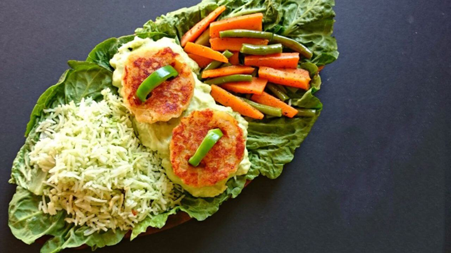 Vegetables (zucchini, onion, capsicum, beans, carrots), 1 cup paneer or tofu, herb butter rice (basmati rice, herbs, butter), sizzler sauce (2 tbsp olive oil, 1 tsp garlic paste, 1/2 cup tomato puree, 1 tsp soya sauce, 1 tsp vinegar, 1/2 tsp red chili powder, 1 tsp sugar, 1/2 tsp turmeric powder, salt to taste, 1 tbsp lemon juice and herbs), butter, salt, pepper, sizzler plate