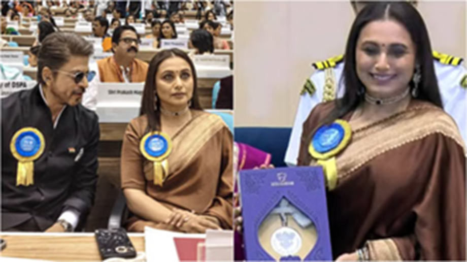 Actress Rani Mukerji was presented with the National Film Award for "Mrs. Chatterjee vs Norway" (2023). This is Rani Mukerji's first National Film Award. Rani Mukerji and Shah Rukh Khan were seen sitting together at the ceremony. Rani attended the awards ceremony in a brown saree. She completed her look with a white pearl necklace and silver earrings. She looked traditional.