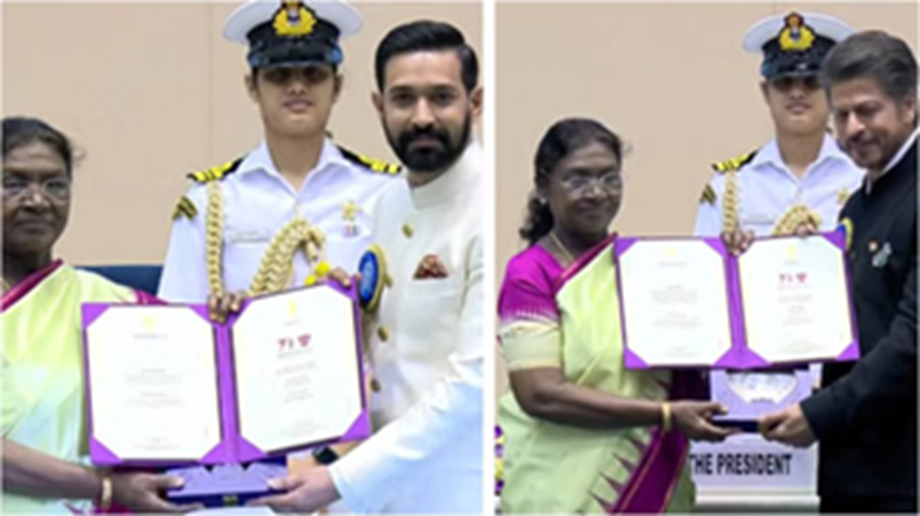 Bollywood's King Shah Rukh Khan was the center of attention at this year's awards ceremony. He was presented with the National Film Award for the film "Jawaan" (2023). Vikrant Massey was also presented with the National Award for "12th Fail." Both stars were presented with the award for Best Actor. Shah Rukh Khan was seen in a black suit at the prestigious 71st National Film Awards ceremony. His manager, Pooja Dadlani, also attended the ceremony. Vikrant Massey looked stunning in a white suit. This is the first National Film Award for both Vikrant and Shah Rukh.