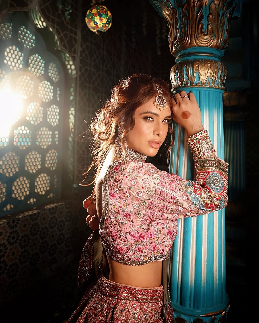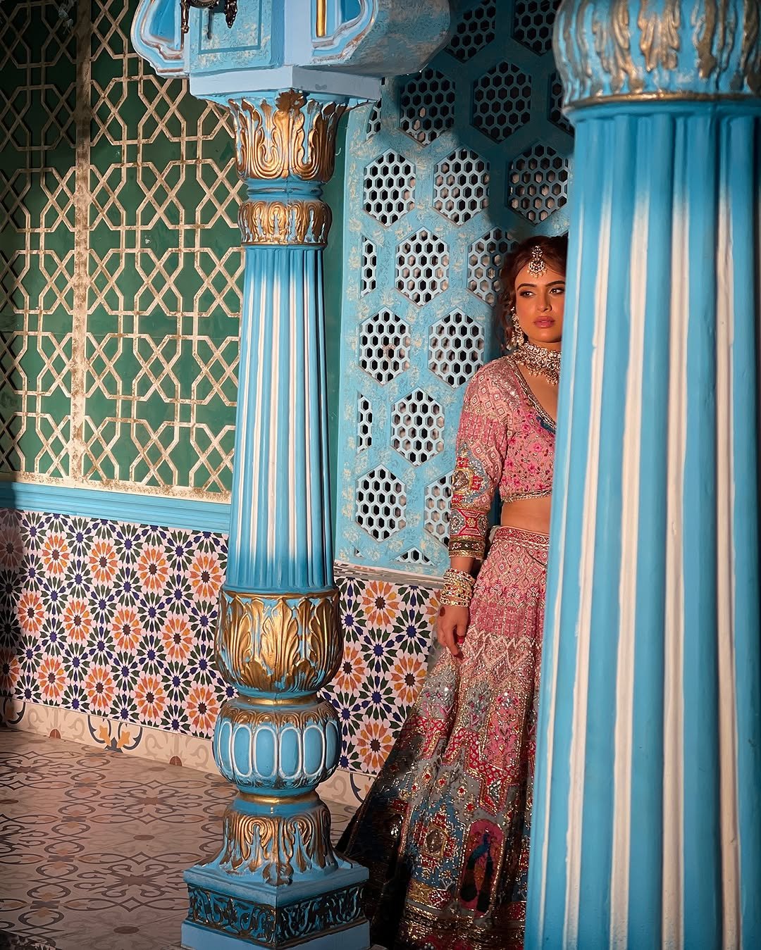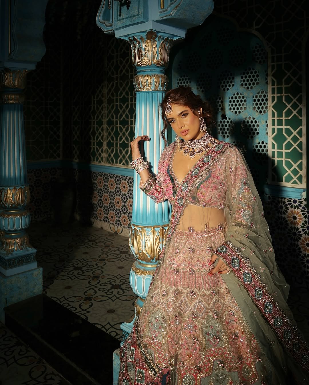In the latest pictures, you can see that actress Neha Malik is wearing a very sizzling pink lehenga during the photo shoot, in which she looks very sizzling and hot.