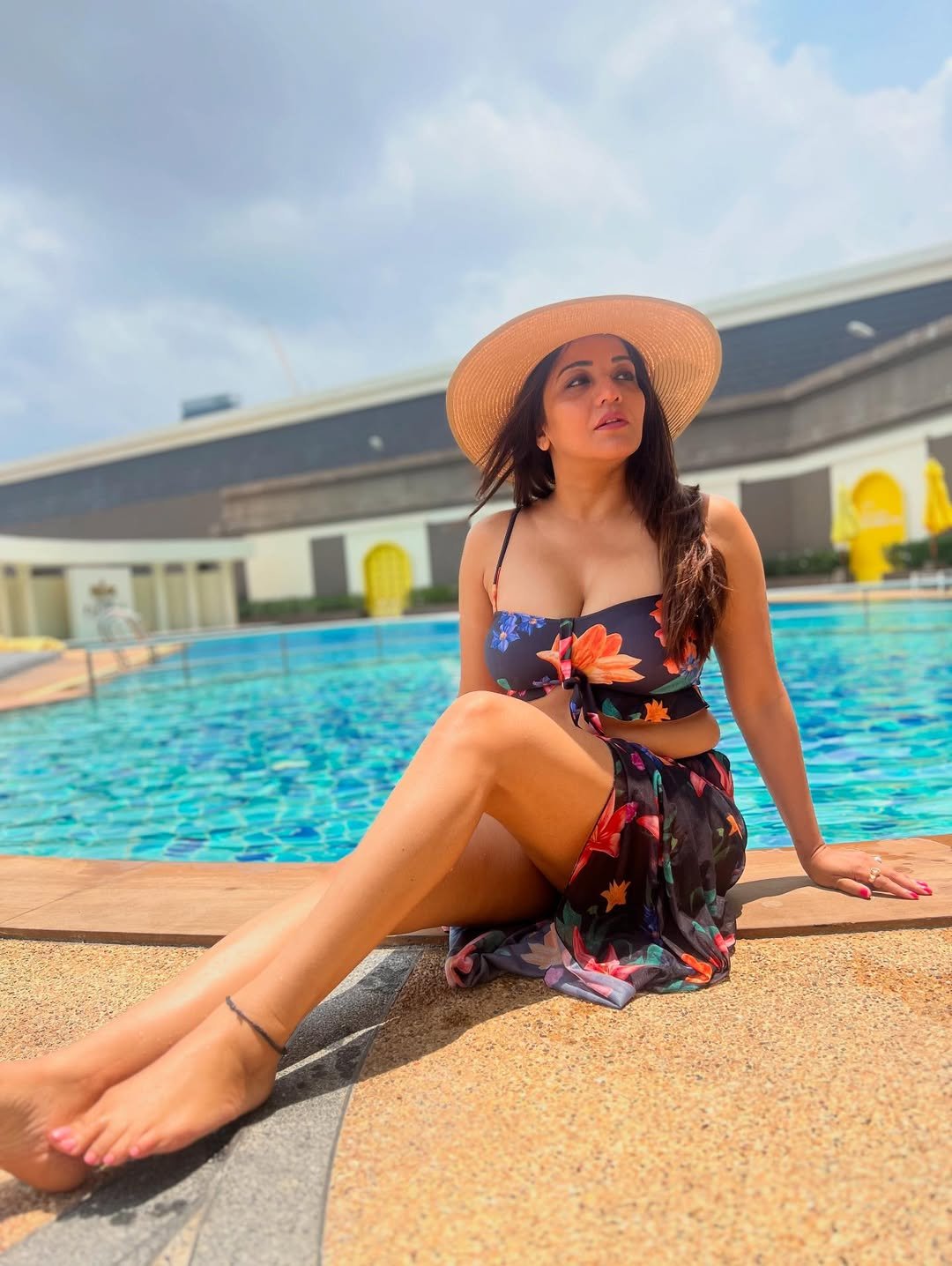 It can be seen in the pictures that she has given many poses in a short skirt and a crop top.