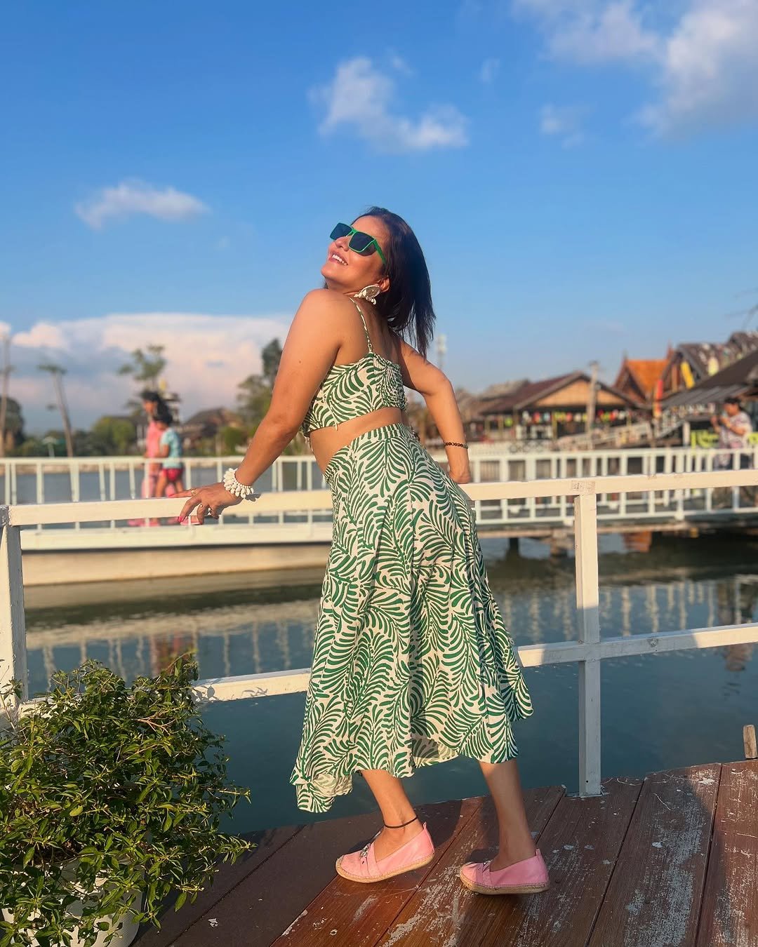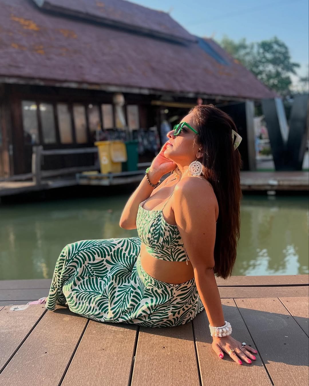 Monalisa has shared her beautiful pictures in a green skirt and crop top.