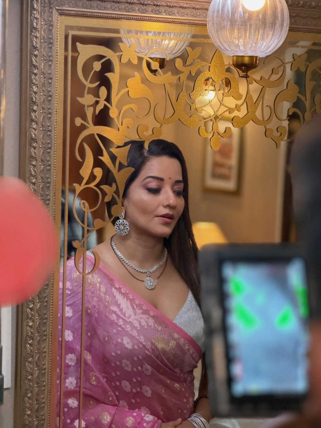 Monalisa's look in a pink saree is being loved by her fans.