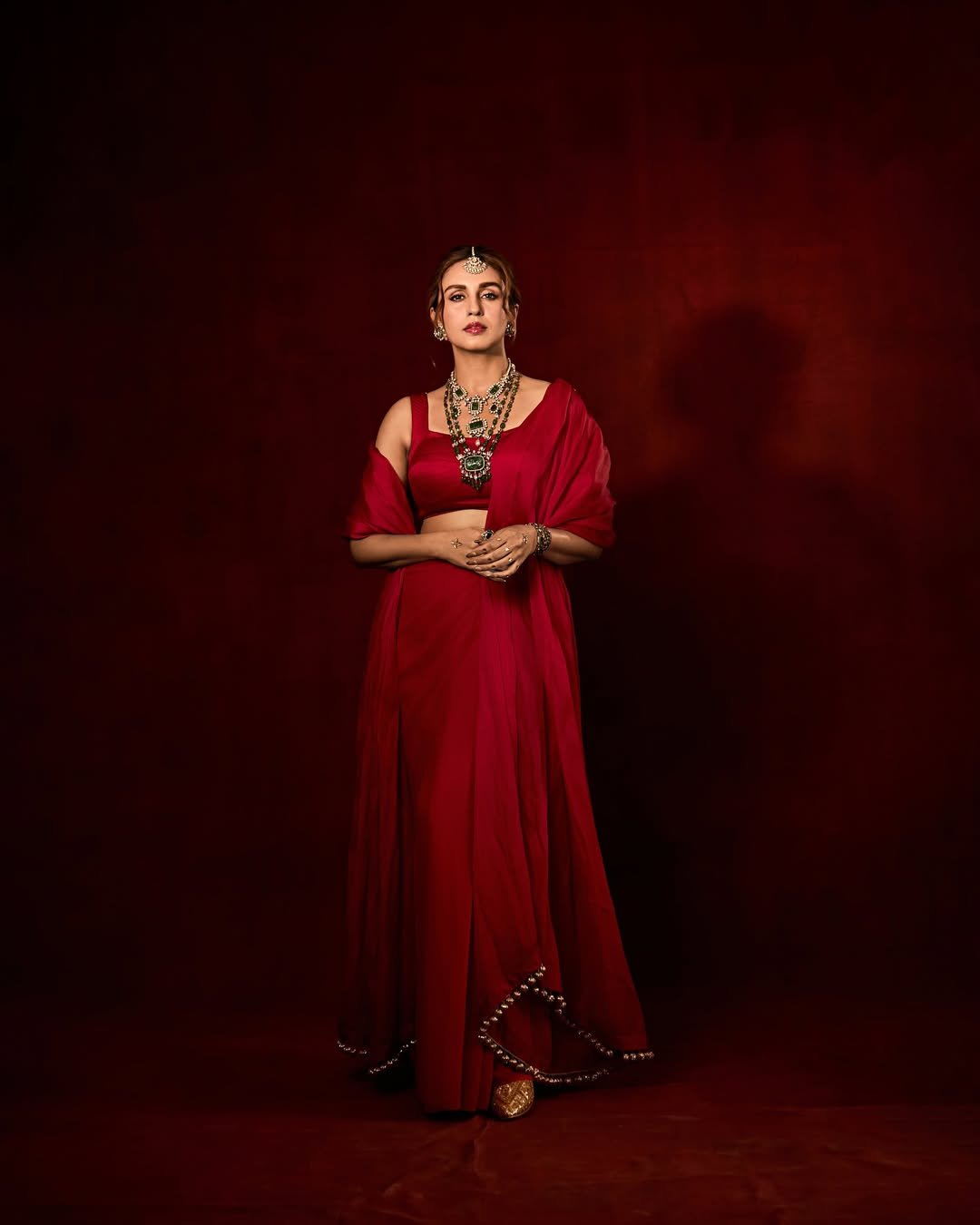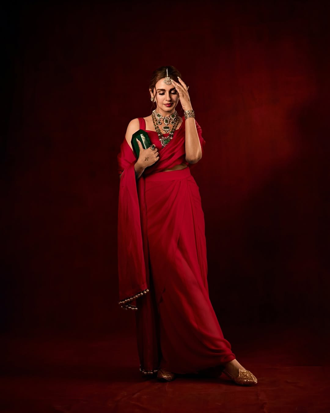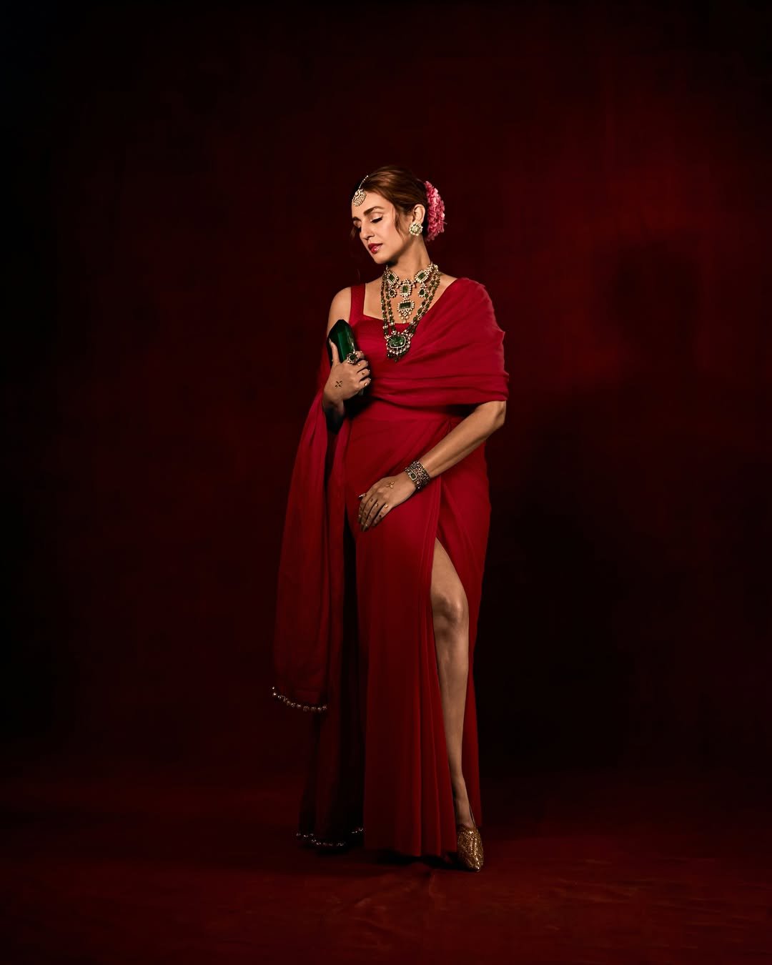 In these photos, Huma is seen in a red dress.