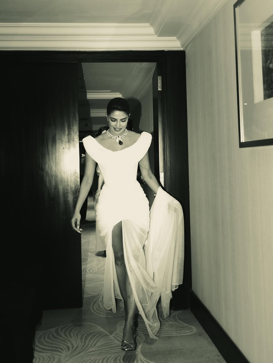 Priyanka struck several stunning poses in a white front-cut dress.