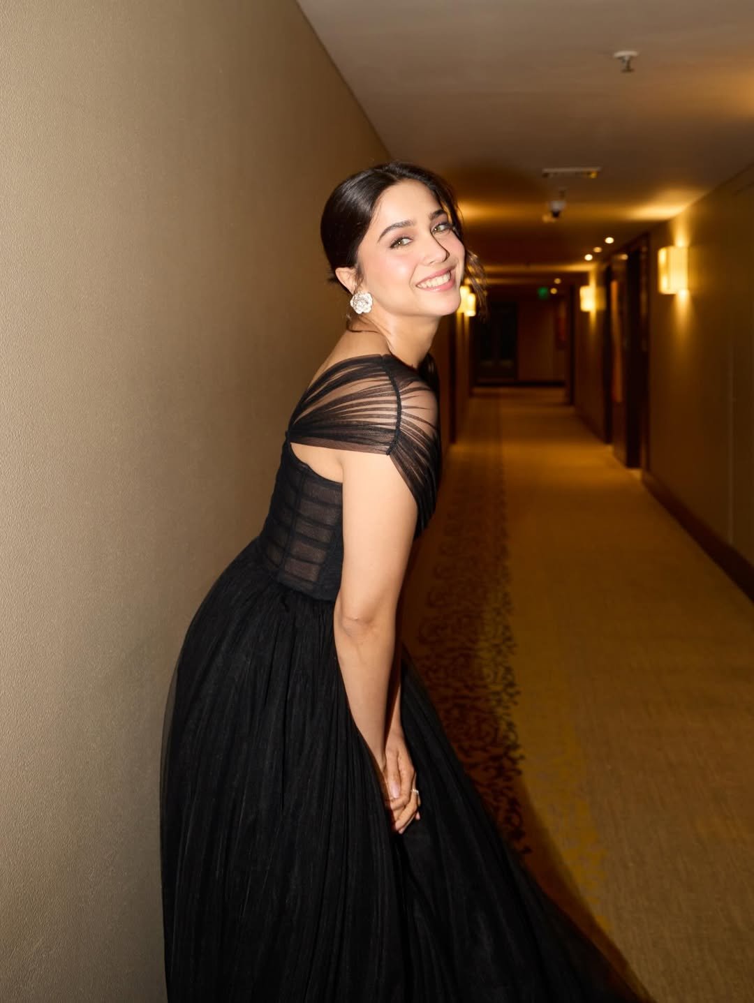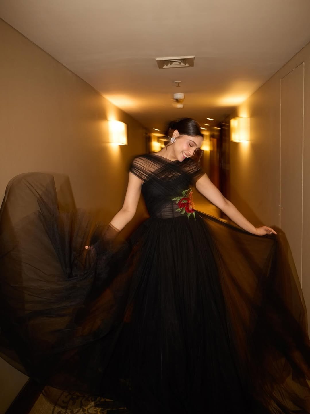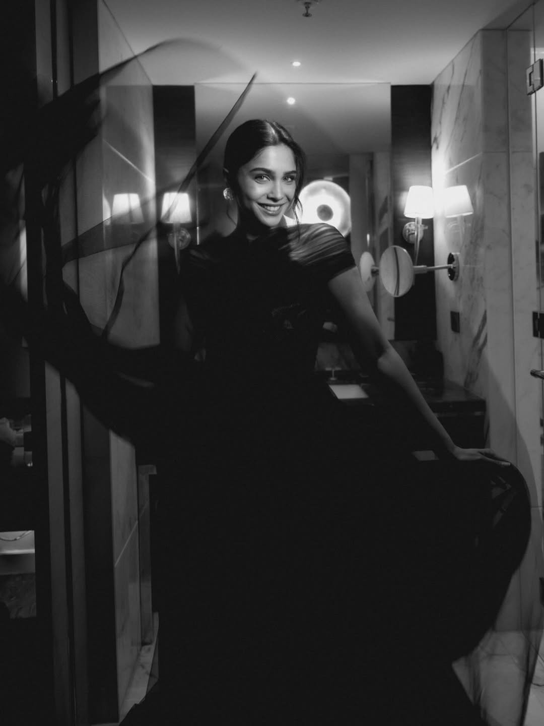 The actress struck several stunning poses in a black outfit.