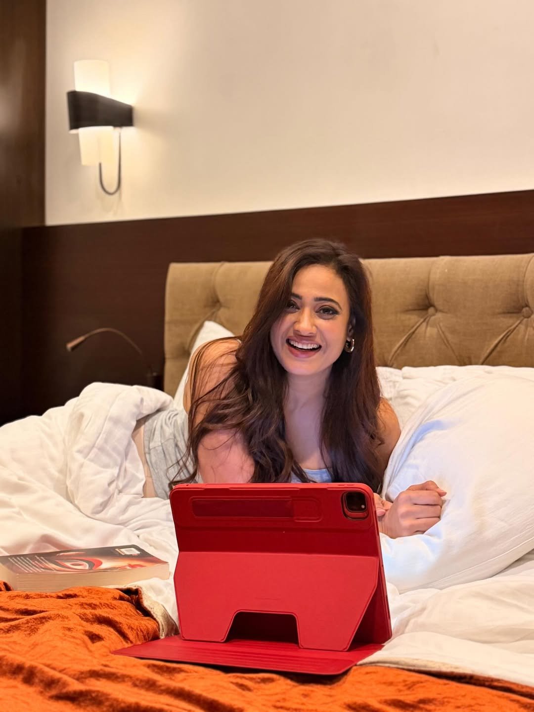 Shweta Tiwari is holding a book in her hand. A tablet is placed on her bed. The actress shared the photos with a wonderful caption.