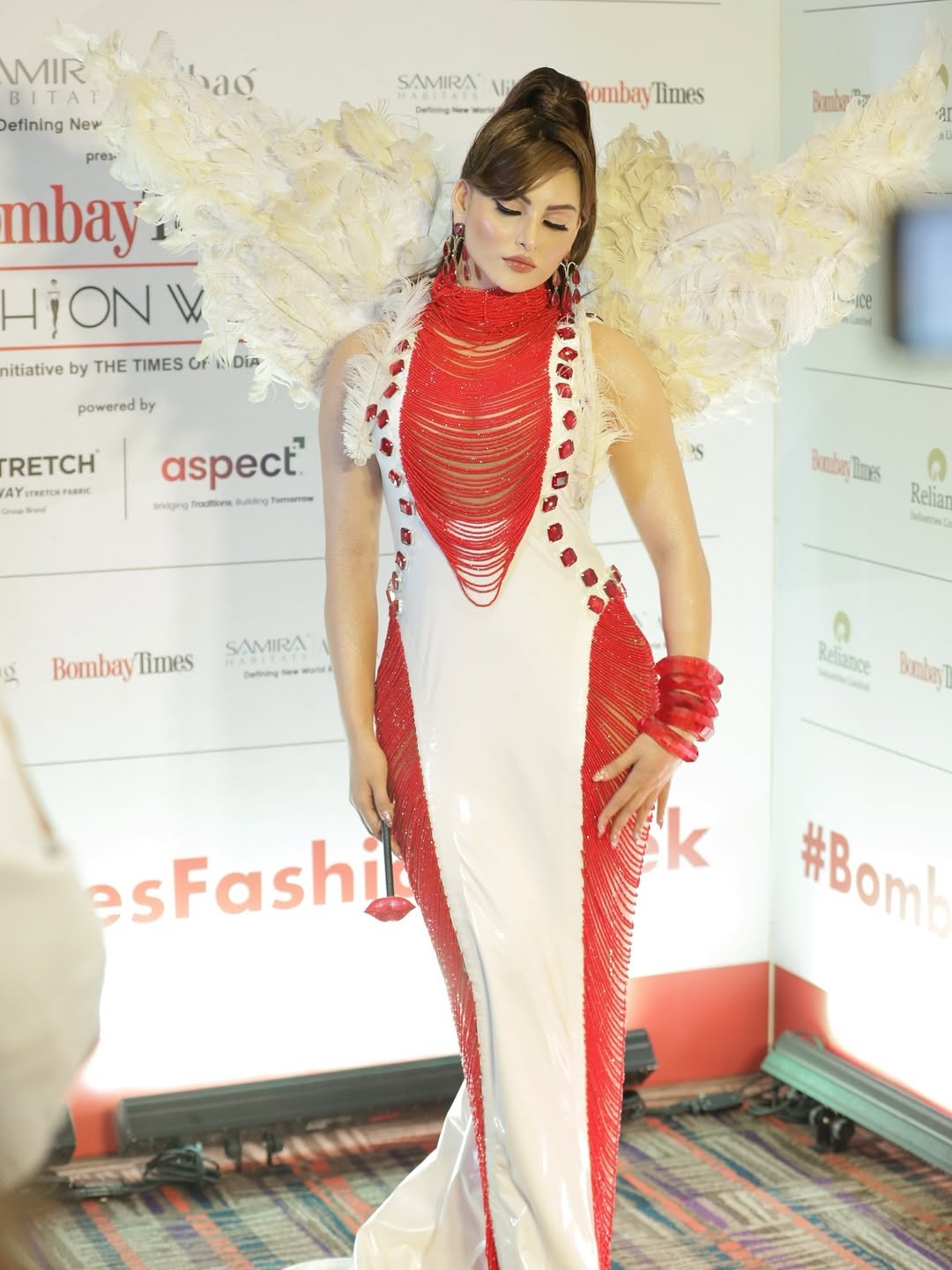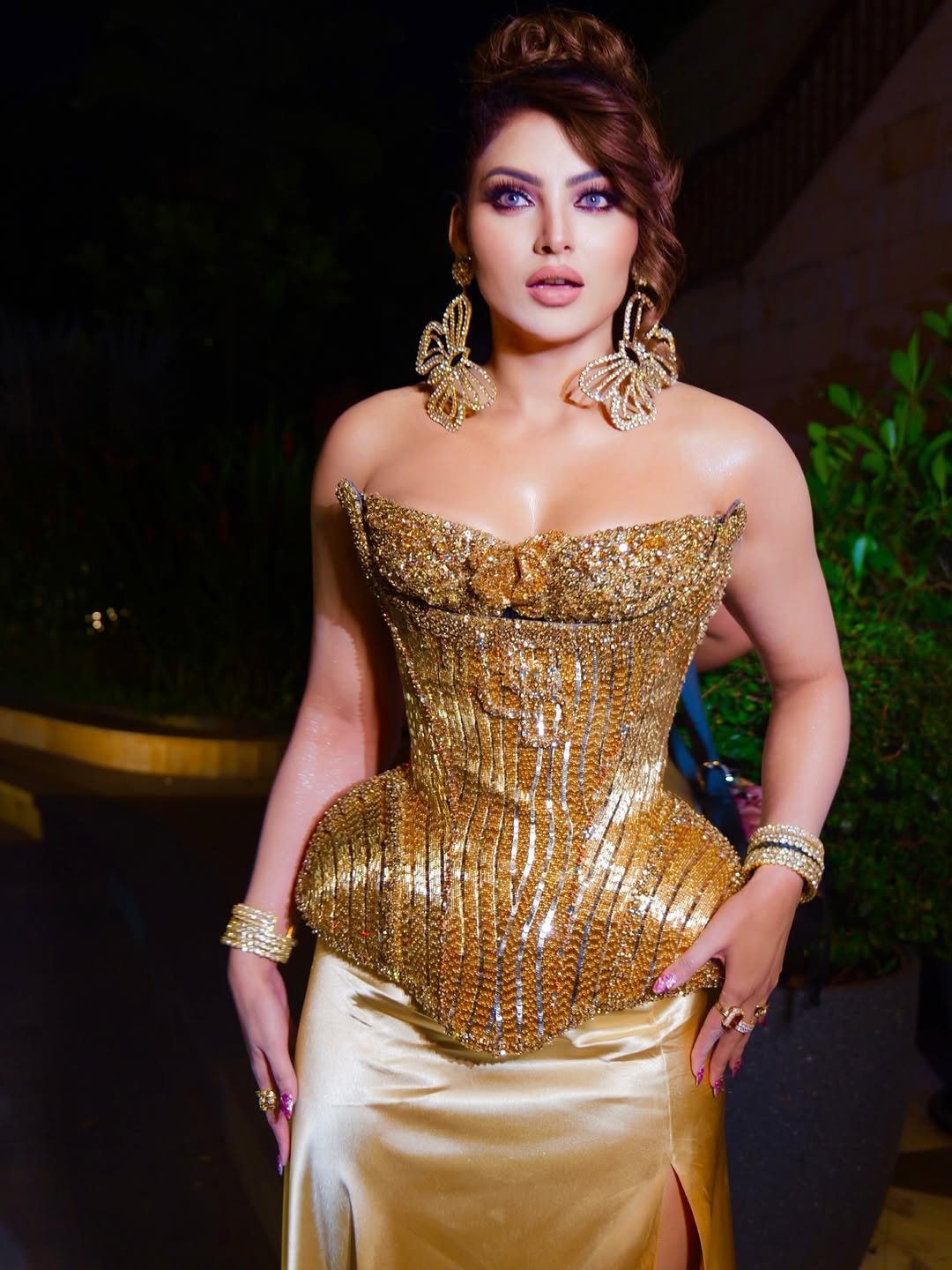 Urvashi completed her look with butterfly earrings.