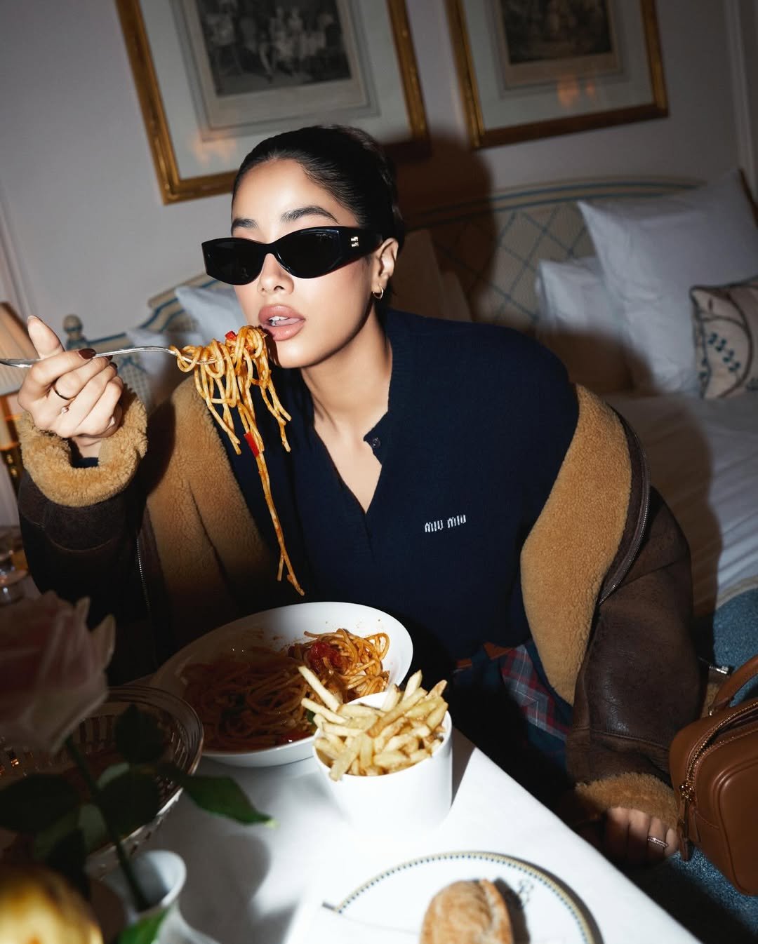 In this photo, Janhvi is seen eating delicious food.