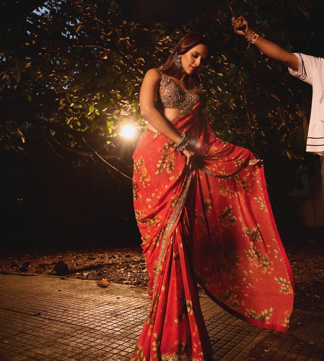 Tripti wore a saree for the occasion. The intricate star-studded stripes on the saree gave it a modern look.