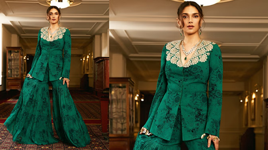 If you do not feel like wearing a saree, then you can carry a green colored sharara suit. You will be very comfortable wearing a green colored sharara. Wear heavy earrings with it and tie your hair by making it half braided. This look will work to add to your beauty.