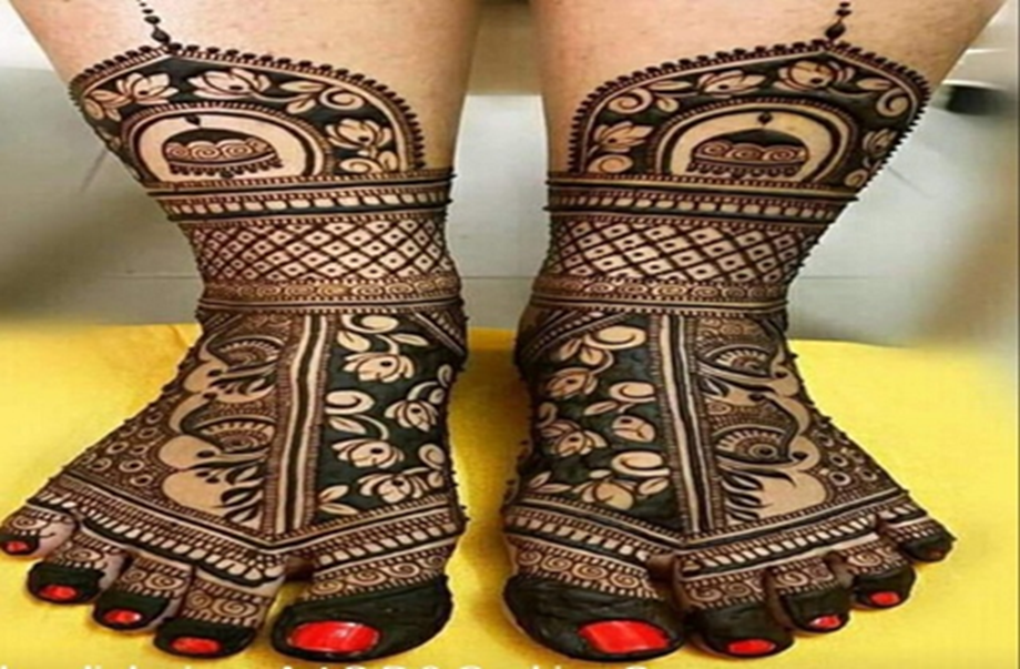 Top-to-toe mehndi designs cover the entire foot from the top to the ankle. This style gives the bride a traditional and beautiful look. If you want to decorate your entire foot with mehndi, this look is attractive.
