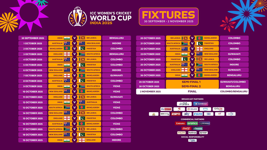 The ICC had already announced the dates and venue of the Women's ODI World Cup, but on Monday it also announced its schedule. This global tournament will start on September 30, and its final match will be played on November 2. Its matches will be held in five cities of India and Sri Lanka, which include M Chinnaswamy in Bangalore, ACA Stadium in Guwahati, Holkar Stadium in Indore, ACA-VDCA Stadium in Visakhapatnam and R Premadasa Stadium in Colombo.